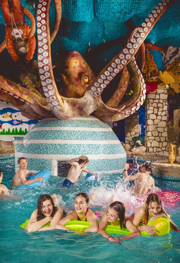 I když, jak bylo zmíněno, v Pensionu Aspen je krytý bazén, tak po pěti minutách chůze od penzionu je koupaliště s umělým bazénem, skluzavkami a pláží, které nabízí příjemné prožití teplých dnů.